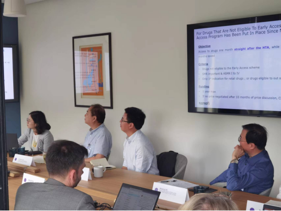 7月21日下午,调研组拜访了赛诺菲总部并座谈。首先,赛诺菲集团公司事务主管Josep Catlla先生对赛诺菲公司的情况进行了介绍并对调研组表示欢迎,俞建拖也介绍了此次调研和研究的目的。随后,赛诺菲集团相关工作人员为调研组讲述了法国医疗创新生态系统和政策,介绍了其他促进创新的医疗系统和政策并进行国际对比。最后,双方展开讨论,并交流未来合作计划。